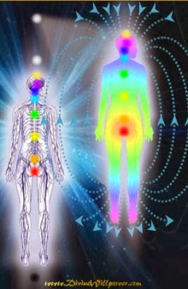 de su chacra causal, con su chacra estrella del alma, uno situado detrás de su cráneo,